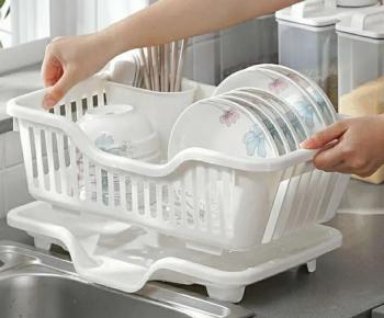 Foldable Dish Rack Kitchen Dish Drainer Holder Rack Shelf Storage Rack Tableware Drainer Basket Sink Drying Organizer with Tray