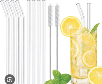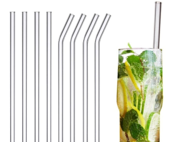 Reusable High Borosilicate Glass Drinking Straws Set With Cleaning Brush and Box Package 5 Pcs