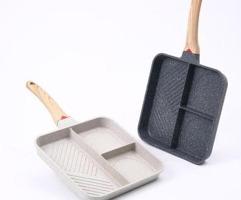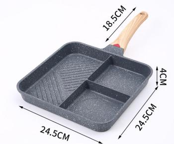 3-Section Nonstick Divided Grill Pan Breakfast Grilling Skillet with Granite Coating Metal Material