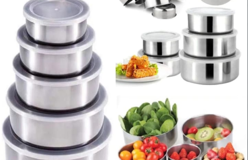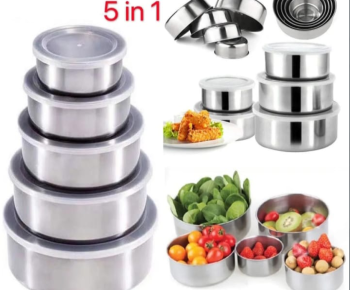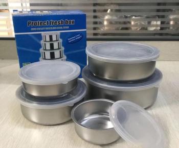 Stainless Steel Five-Piece Sealed Round Takeaway Lunch Box Fresh Keeping Crisper Storage Container With Lid
