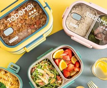 Tedemei 304 Stainless Steel Lunch Box Student Children Japanese Style Separated 2 Grid Lunch Box Portable Leak-Proof Lunch Box Office Worker